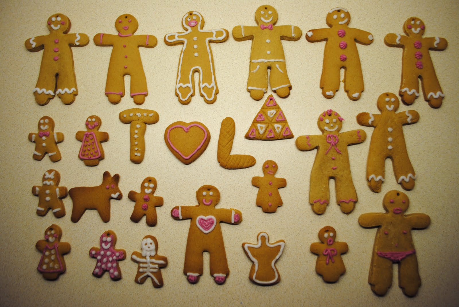 To get in the festive spirit, me and Tommy made some gingerbread ladies and gents. They were supposed to be used as tree decorations, but they taste too good...